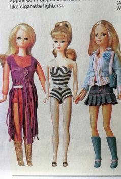 Above: Barbie cheerleaders. The dolls had to try-out to make the varsity, jr. varsity and yell leader squads.