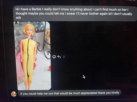 Below: A follower on Instagram asking me help her identify a doll. I totally enjoy helping other collectors.